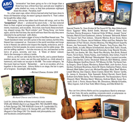 JOHNNY ALOHA "LAVAPALOOZA" ALBUM THANKS